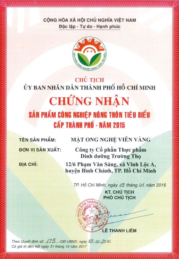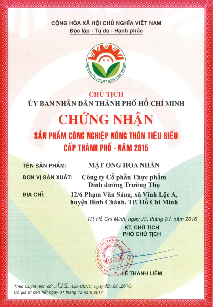 Công ty cổ phần thực phẩm dinh dưỡng Trường Thọ là Công ty chuyên khai thác, sản xuất, kinh doanh, xuất khẩu từ ong. Được thành lập từ năm 2012. Trường Thọ cam kết chất lượng mật ong thiên nhiên không qua pha chế.